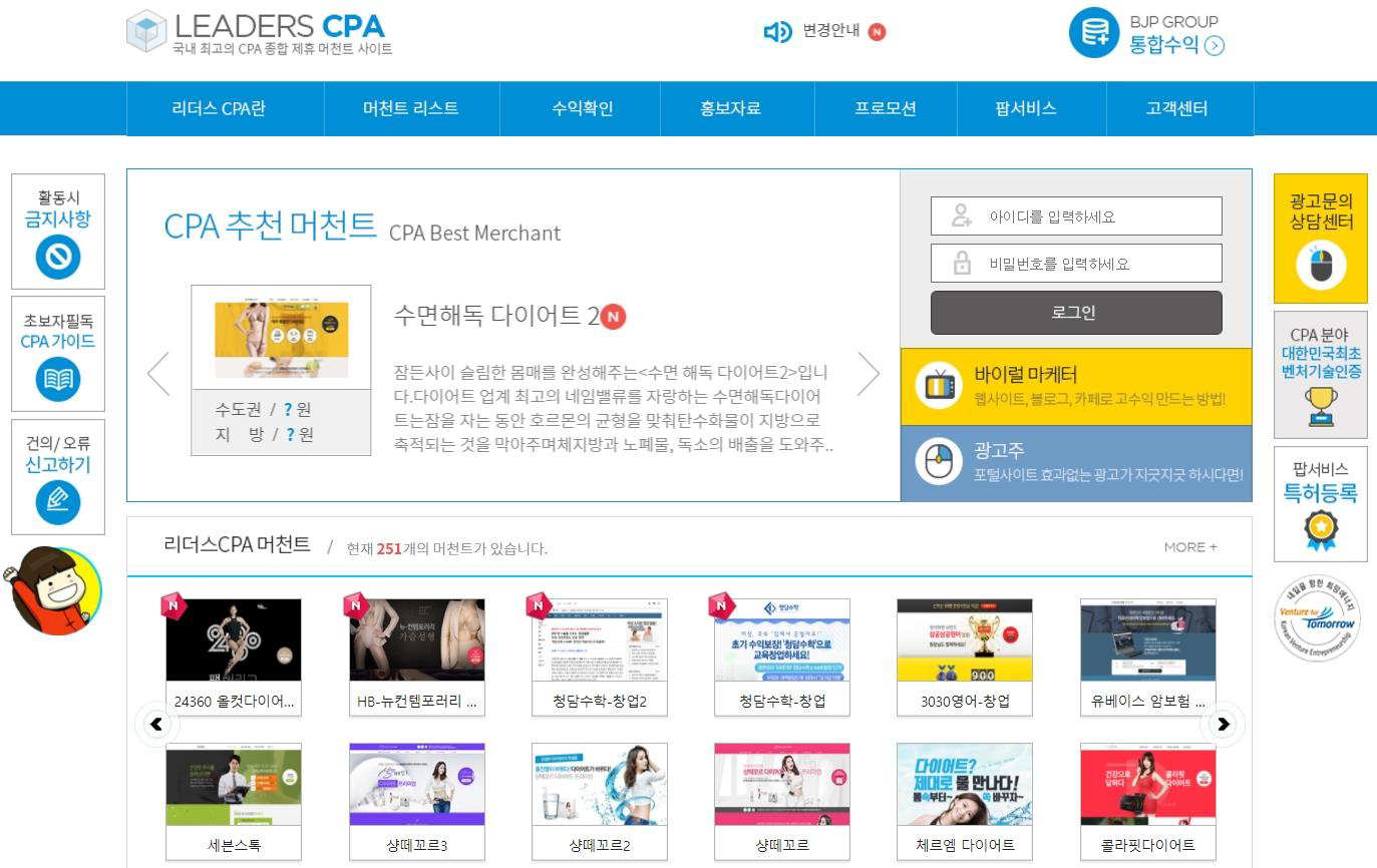 다이어트,금융, 교육, 자격증등의머천트가주를이루고있습니다.