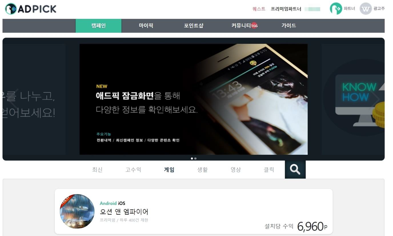 2) 애드픽(http://www.adpick.co.kr)-게임설치형위주