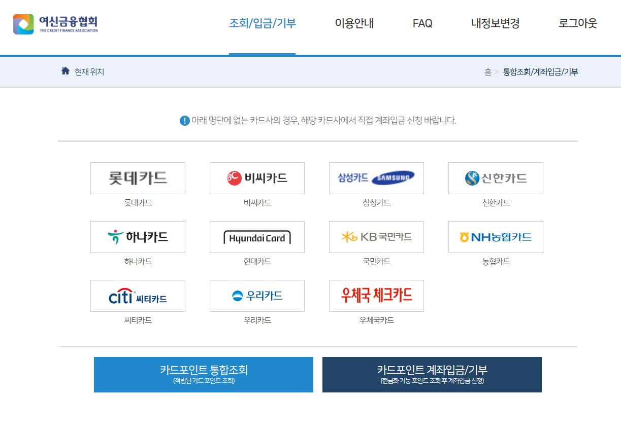 먼저 카드 포인트 통합조회를 검색하시고 들어가시면