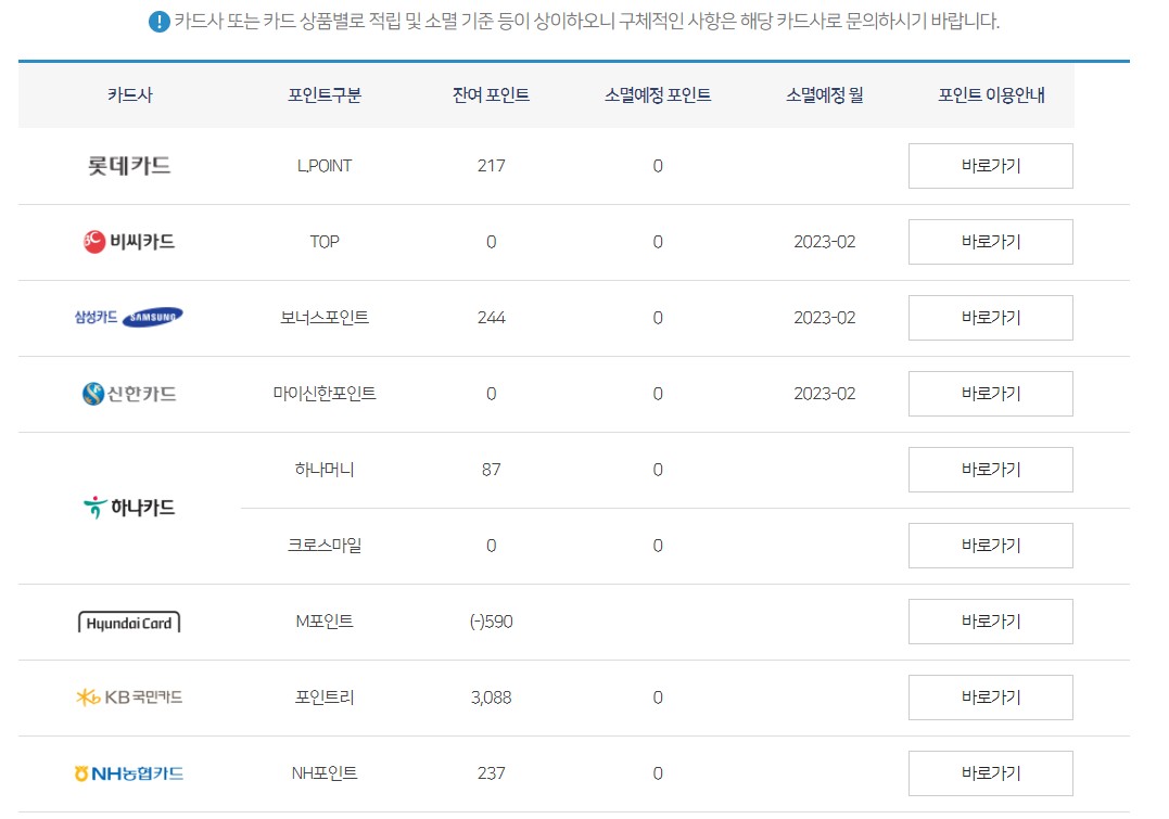 본인 인증을 다 마치고 나면 카드 포인트