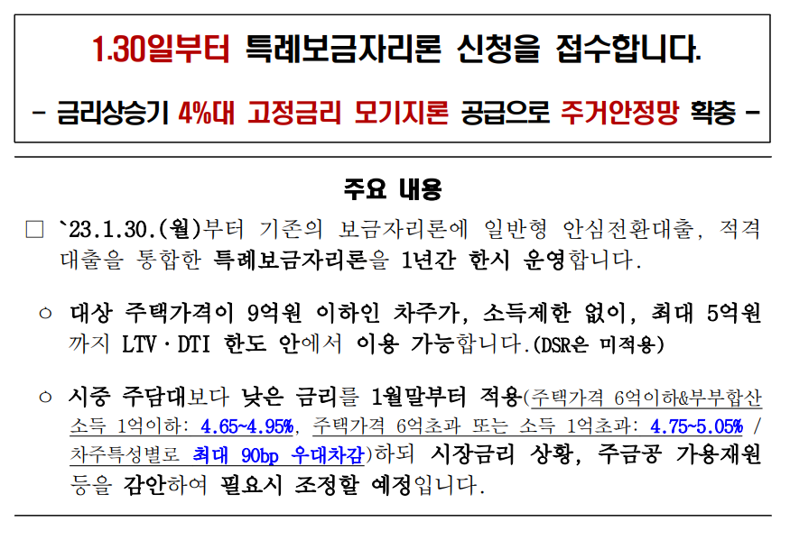 특례보금자리론 1월 30일부터 시작입니다.
