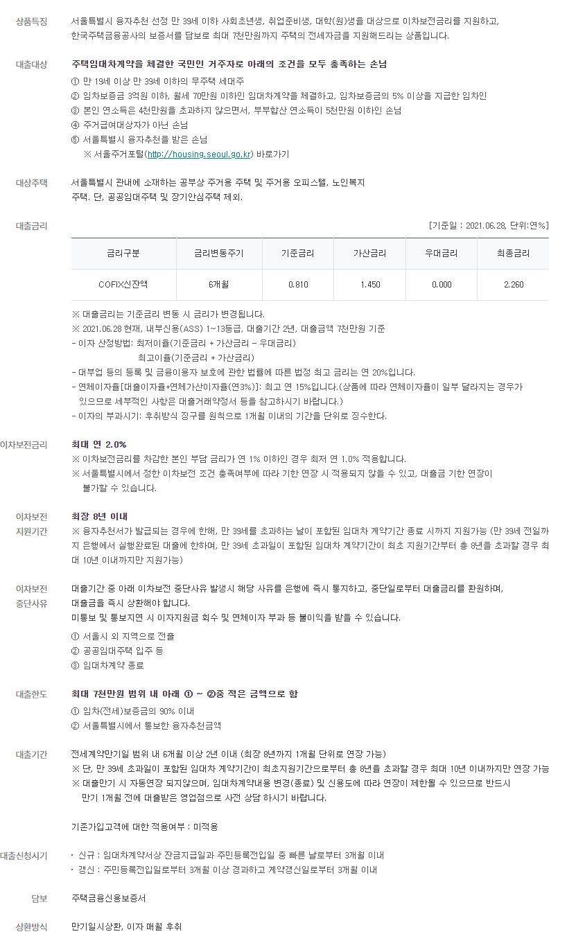 청년의 주거 안정을 위해 출시한 단독 상품이라