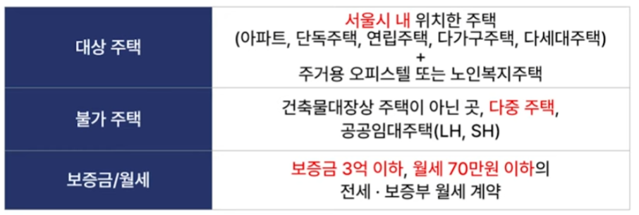 주택의 보증금은 3억 이하 월세는 70만원 이하일 때